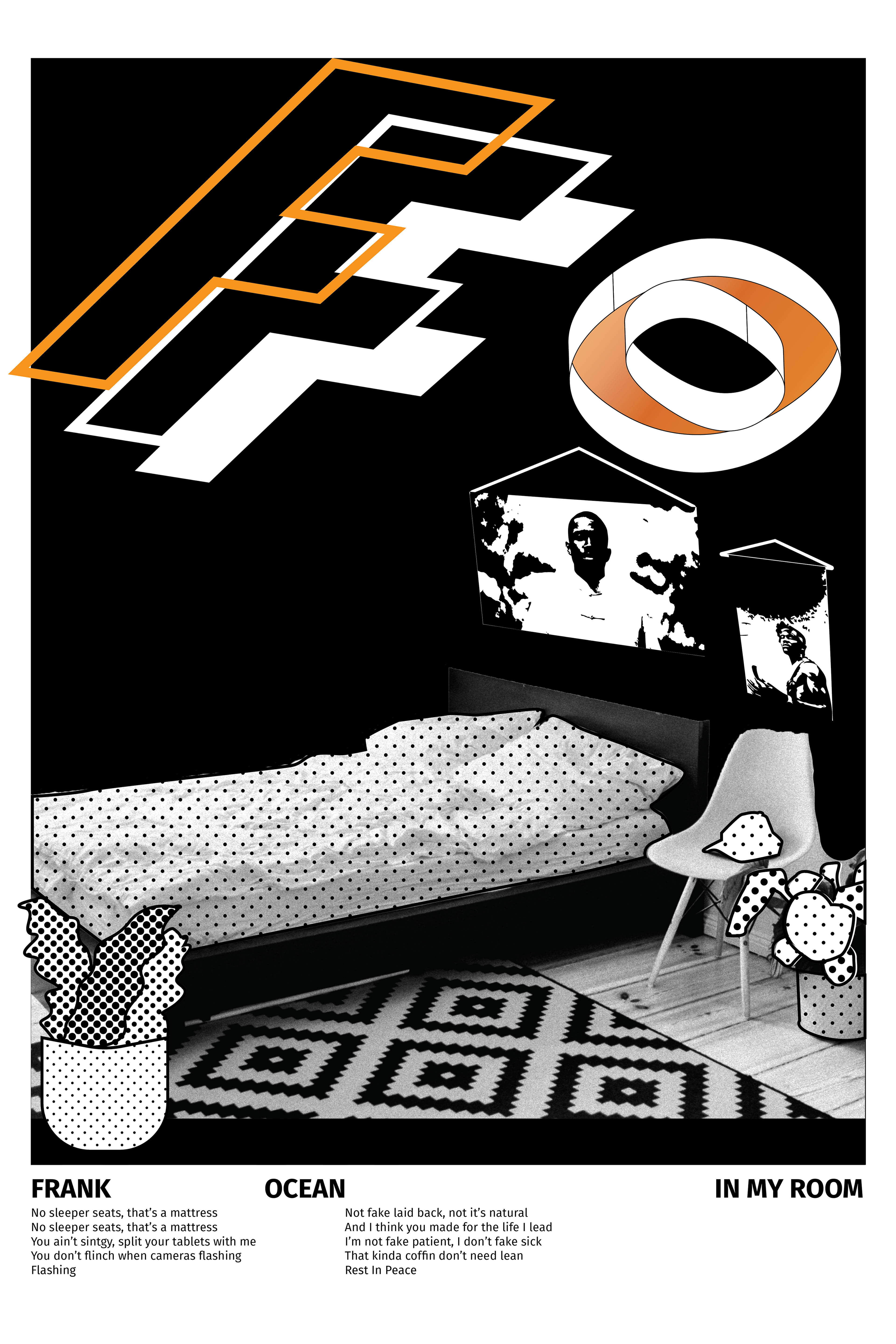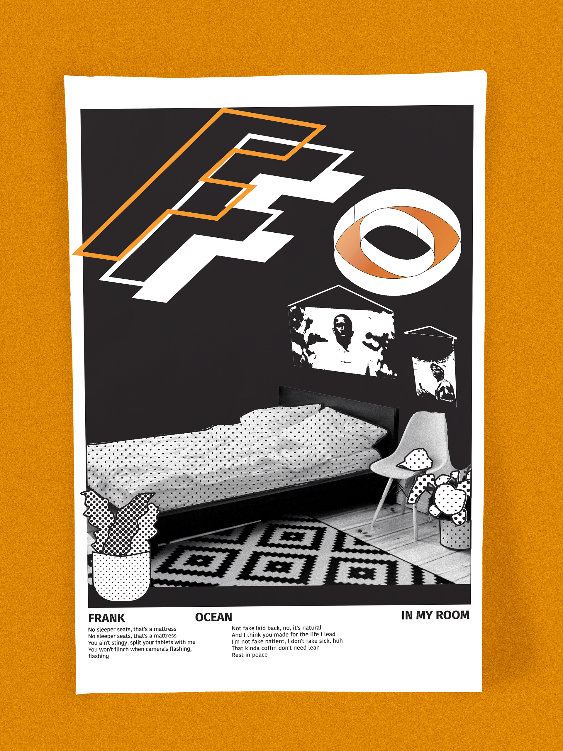 This project focuses on the post modern and modern art eras. This poster combines both art styles and showcases Frank's song 'In My Room'.